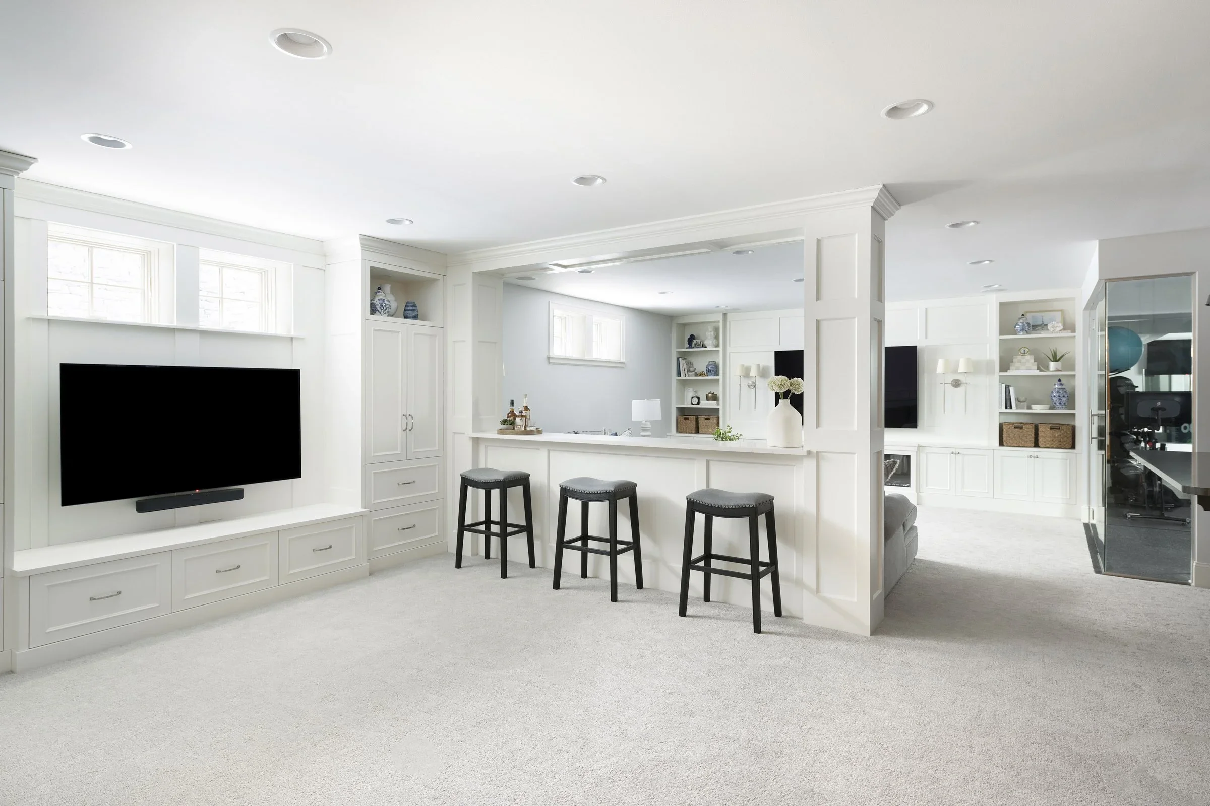 Want to break a sweat without the time commitment or hassle of going to the club? A home gym, weight room, or yoga/pilates studio could be just what you need! Home gyms are a massive design trend on the rise for good reason; they’re convenient, infinitely customizable, and an investment in your wellbeing. We love helping clients prioritize their health and well-being by designing their self-care sanctuaries.