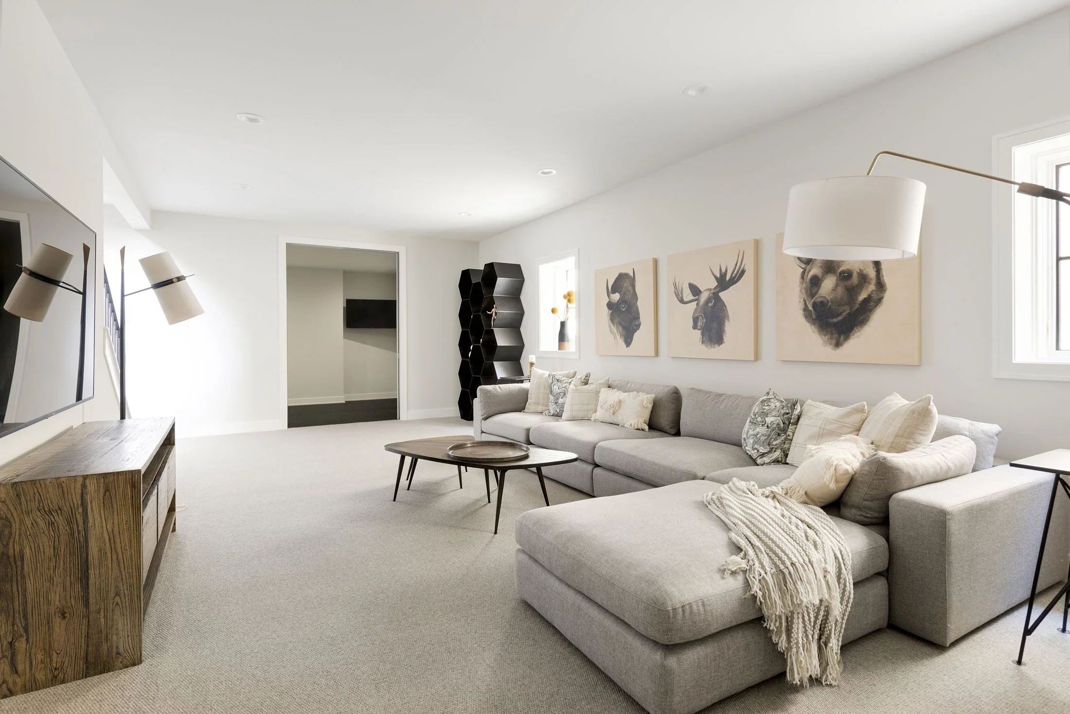 First, make a list of all the activities your lower level will house; those activities are your zones. For example, many basements include areas for lounging, hosting, watching media, working out, kids playing, and storing seasonal items.